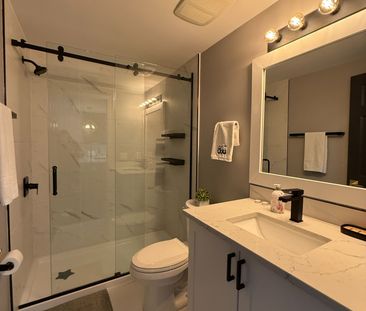 Bright, modern 1-bedroom + den furnished coach house with...