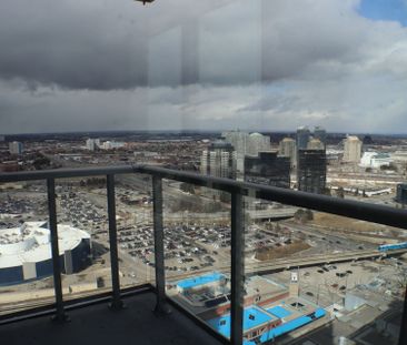 Luxury 1 + den high floor eq2 condo. Steps to mall, resta...