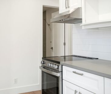 Fully renovated spacious suite features kitchen with mode...