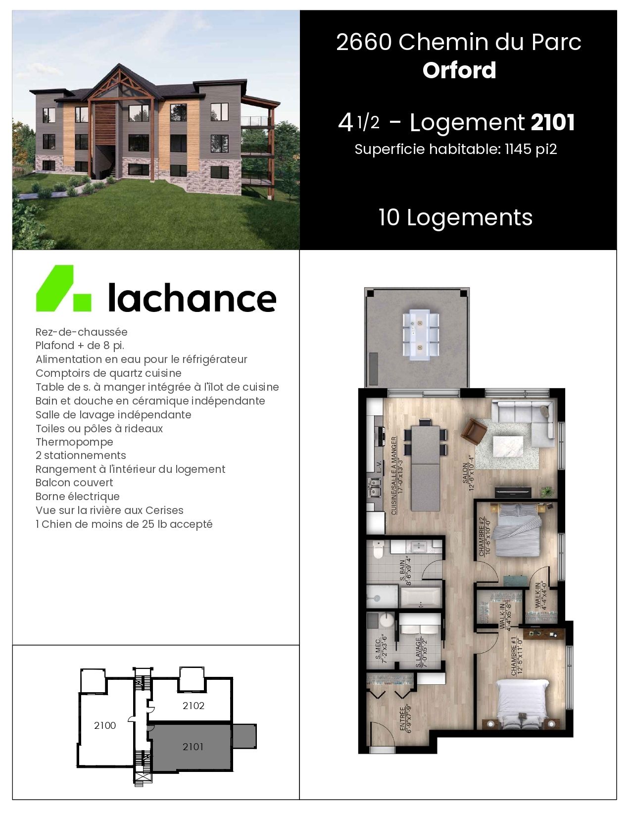 $ 2,000/month, min. 2 bedrooms