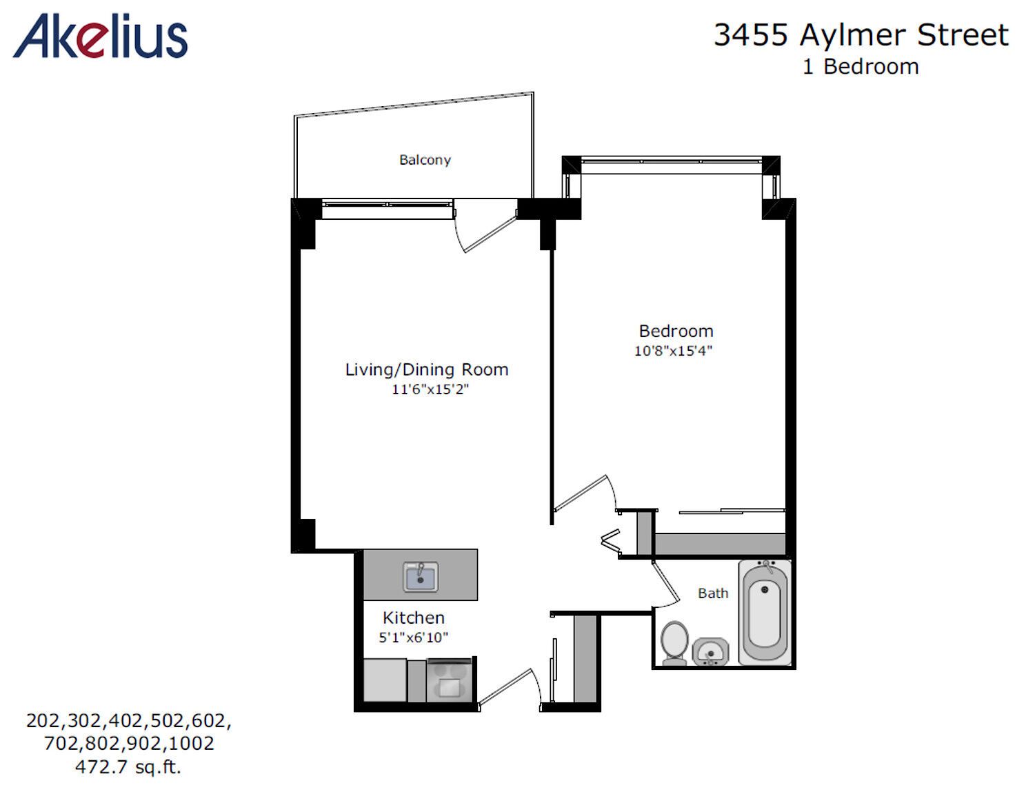 $ 2,200/month, min. 1 bedroom