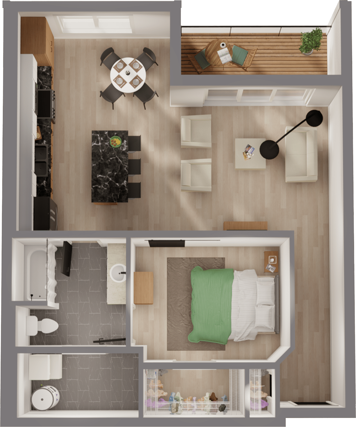 $ 1,800/month, min. 1 bedroom