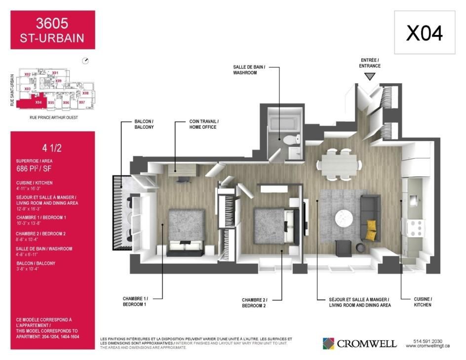 ** Rue St-Urbain, app.504, H2X 2P1, Montréal