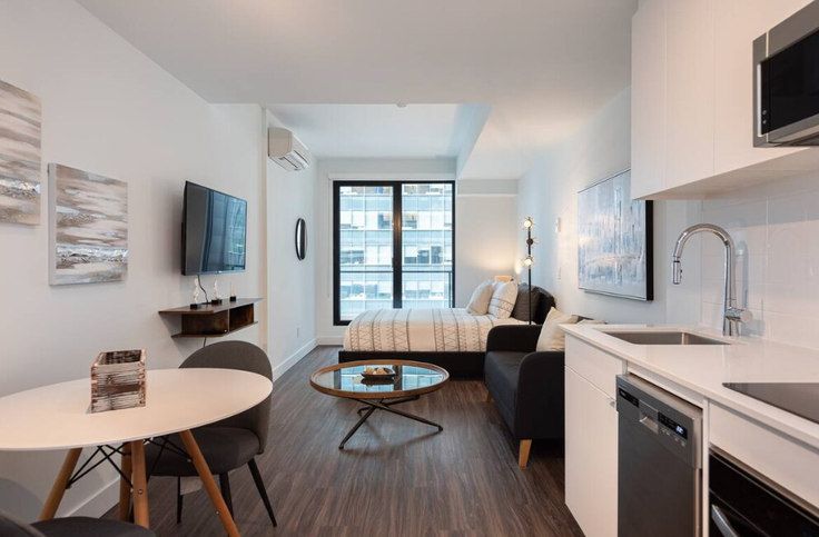 Welcome to your new cozy studio apartment at Boulevard René-Lévesque Ouest, Montreal! This stylish and compact living space offers everything you need for comfortable living. The open layout provides a versatile space for living and sleeping, with a modern kitchenette and a sleek bathroom. With its convenient location, you'll have easy access to nearby amenities and attractions. Priced affordably at $ 2,580, this studio is a great option for those seeking a convenient and compact living arrangement. Don't miss out – schedule a viewing today!
