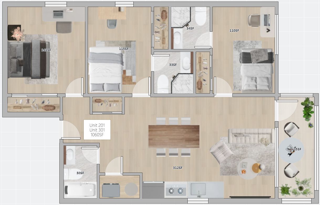 $ 3,600/month, min. 3 bedrooms