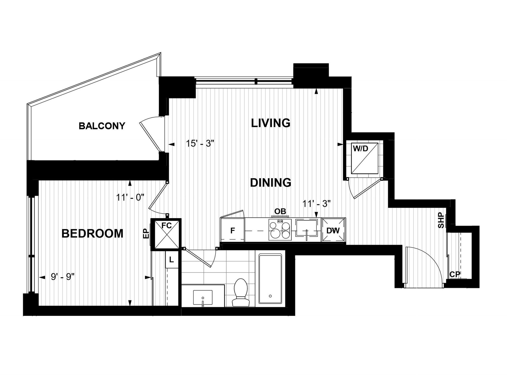 $ 2,000/month, min. 1 bedroom