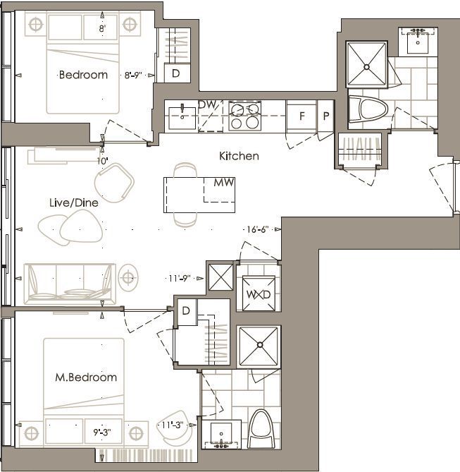 $ 3,200/month, min. 2 bedrooms