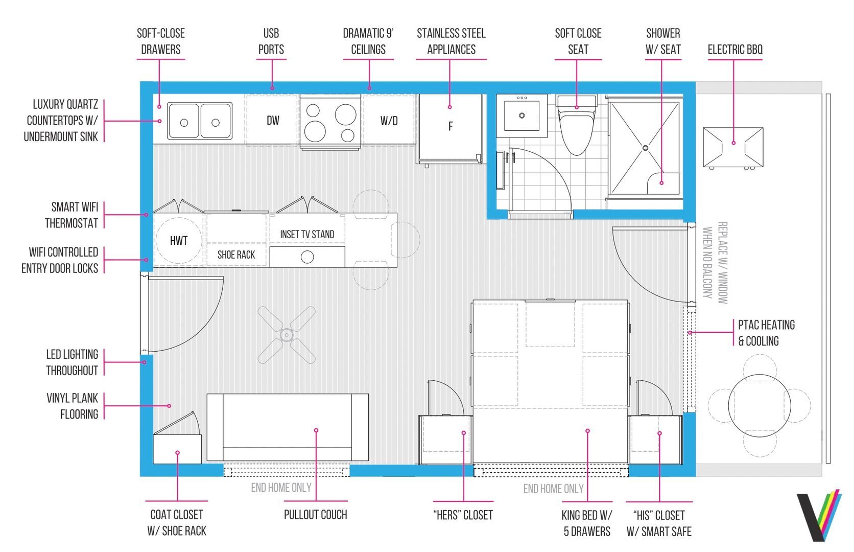 $ 1,600/month, min. 1 bedroom