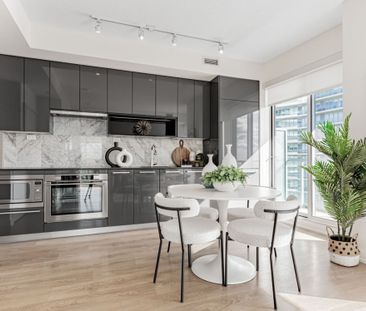 Modern 1+den suite at tango 2 condos featuring a sleek ki...