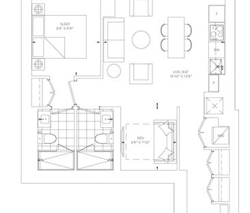 Well-designed 2-bedroom plus den, 2-bath suite in the hea...