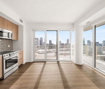 This corner one-bedroom at glass house lofts delivers nat...